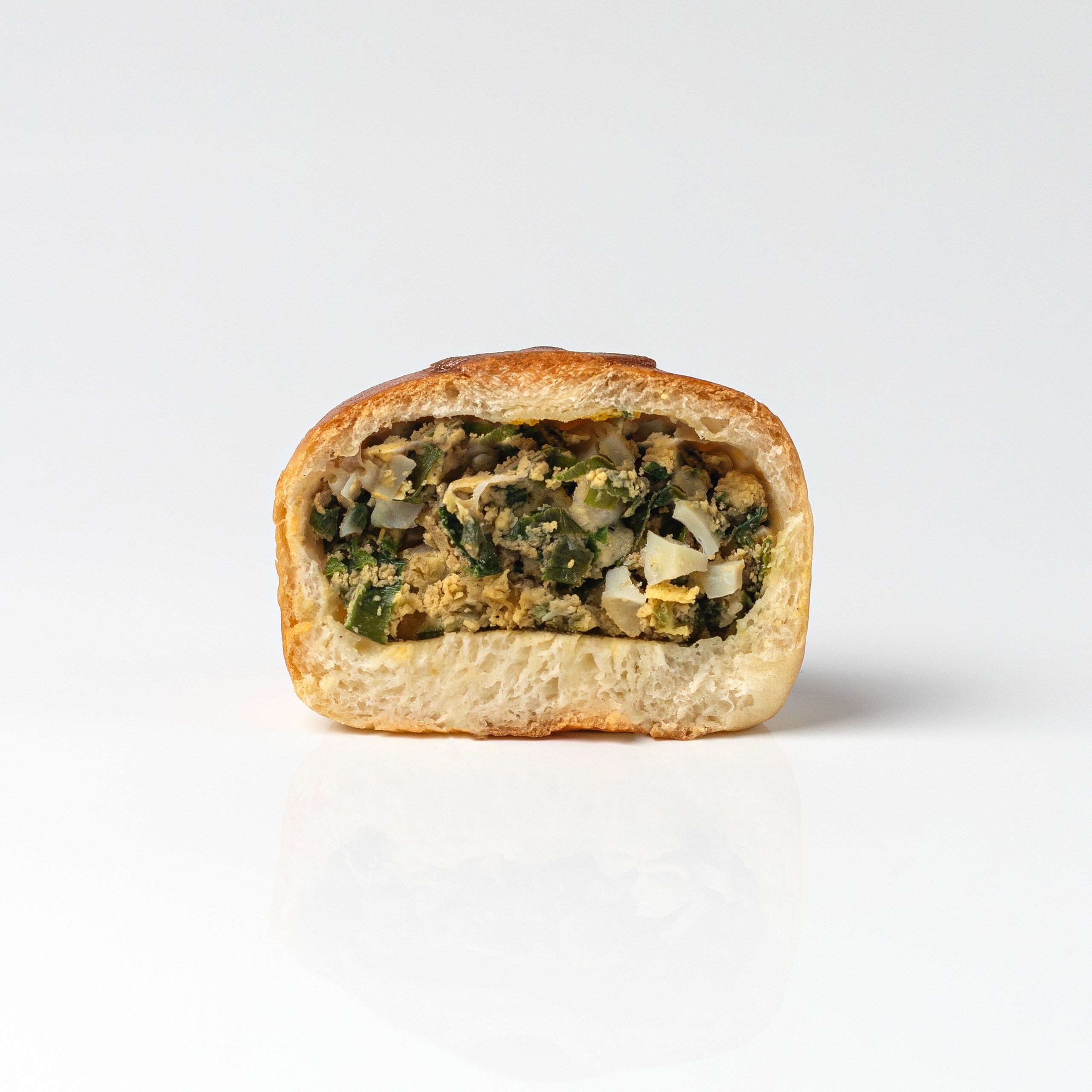 Нежное дрожжевое тесто, зеленый лук и яйцо