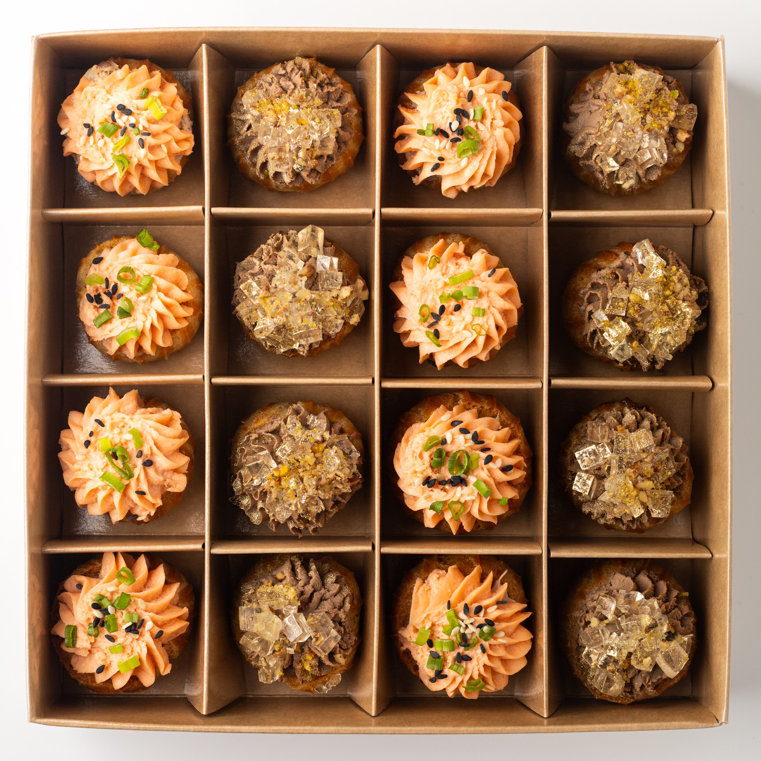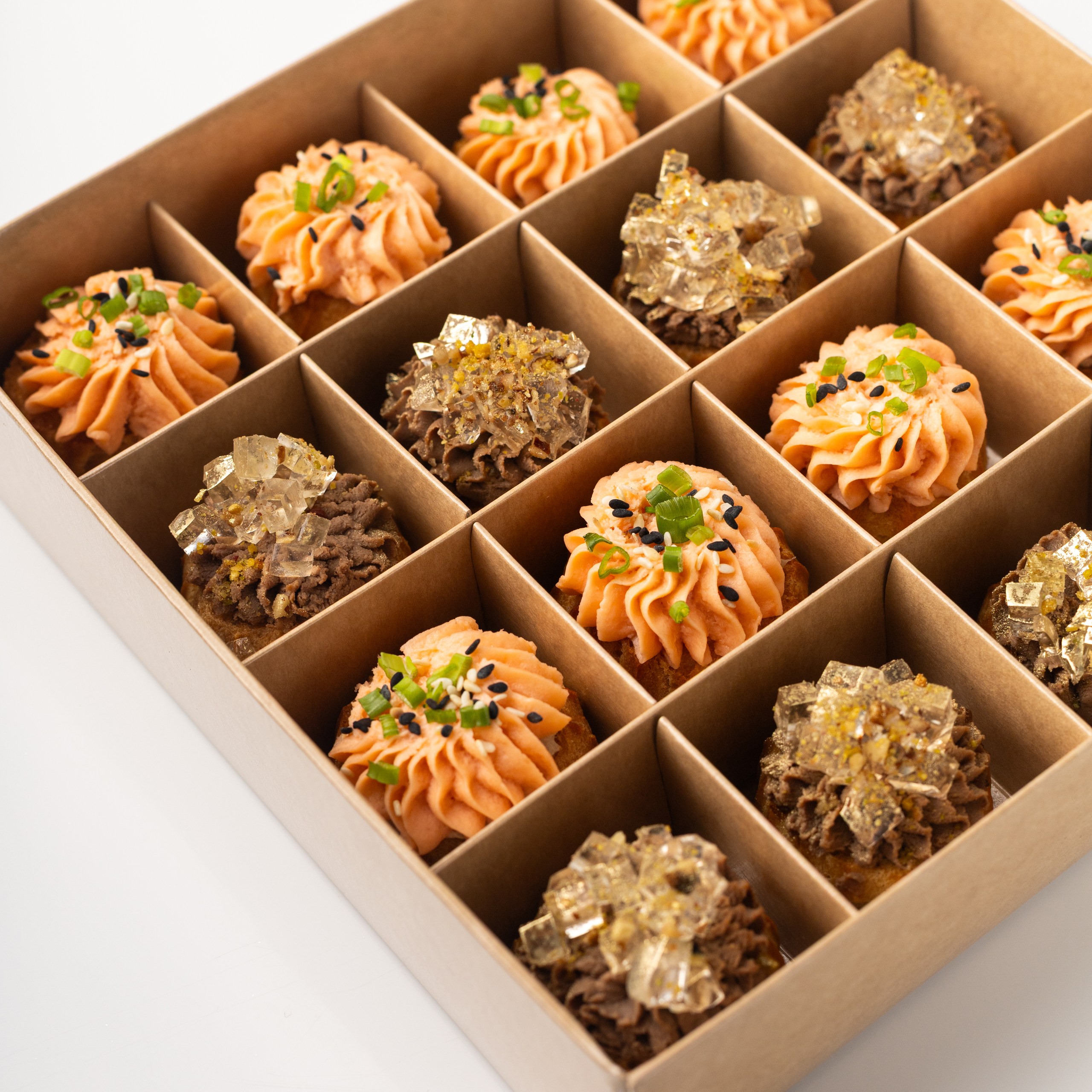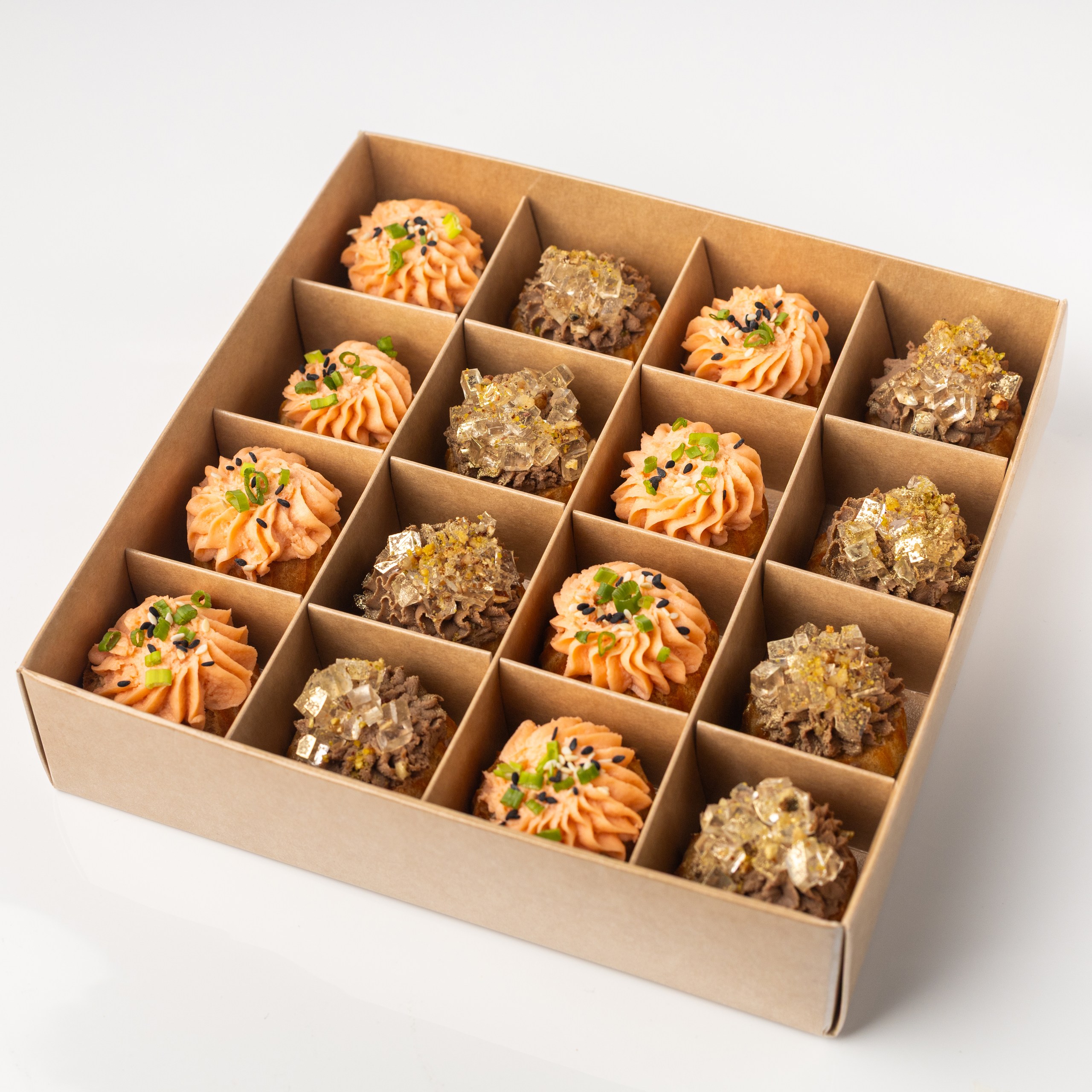 Бокс профитролей с муссом из семги и паштетом из печени цыпленка