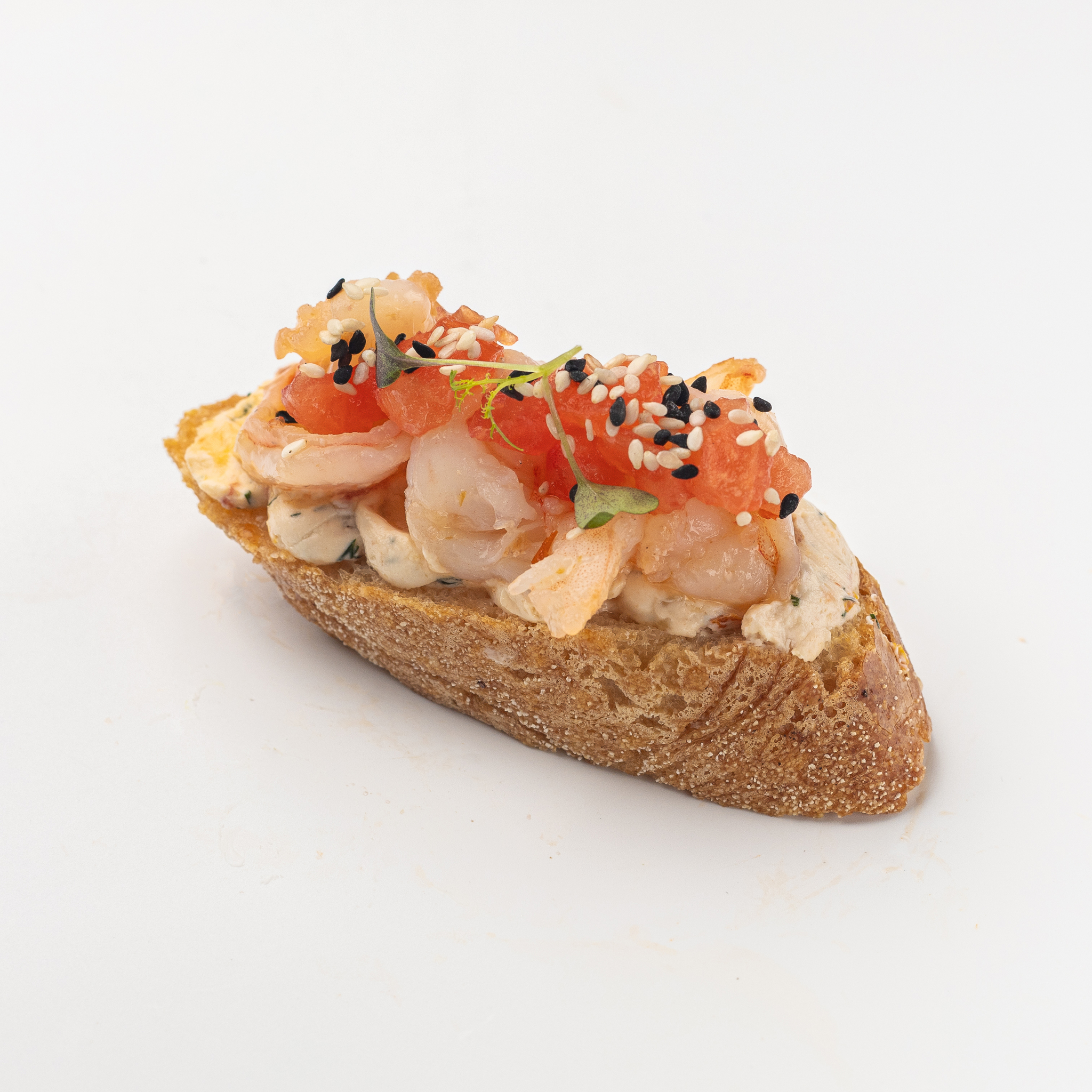 Брускетта с креветкой СвитЧили и сливочным муссом с зеленью 6 шт