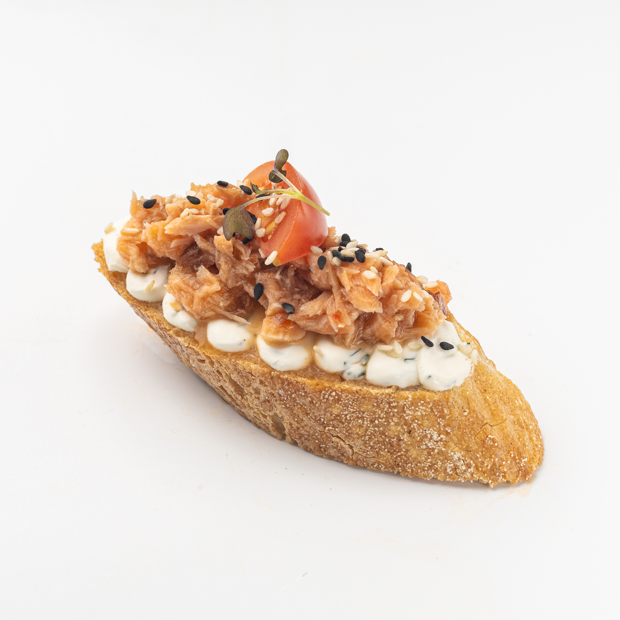 Брускетта с семгой горячего копчения и сливочным муссом 6 шт