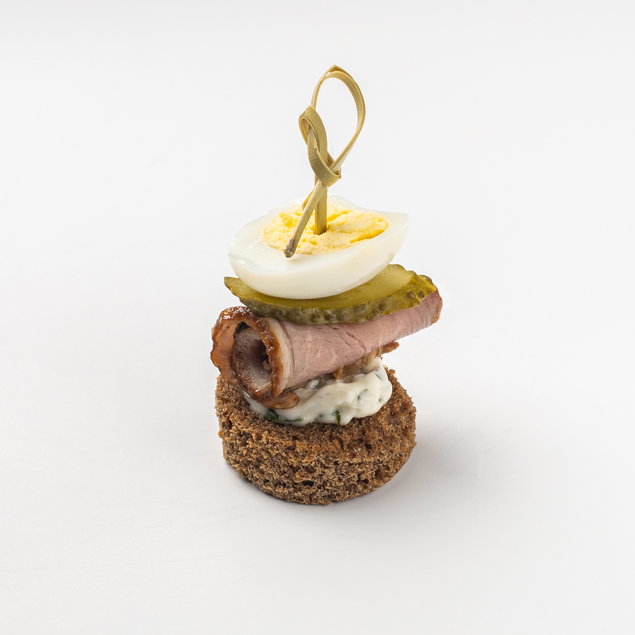 Канапе с уткой, соусом ТарТар и перепелиным яйцом 16 шт