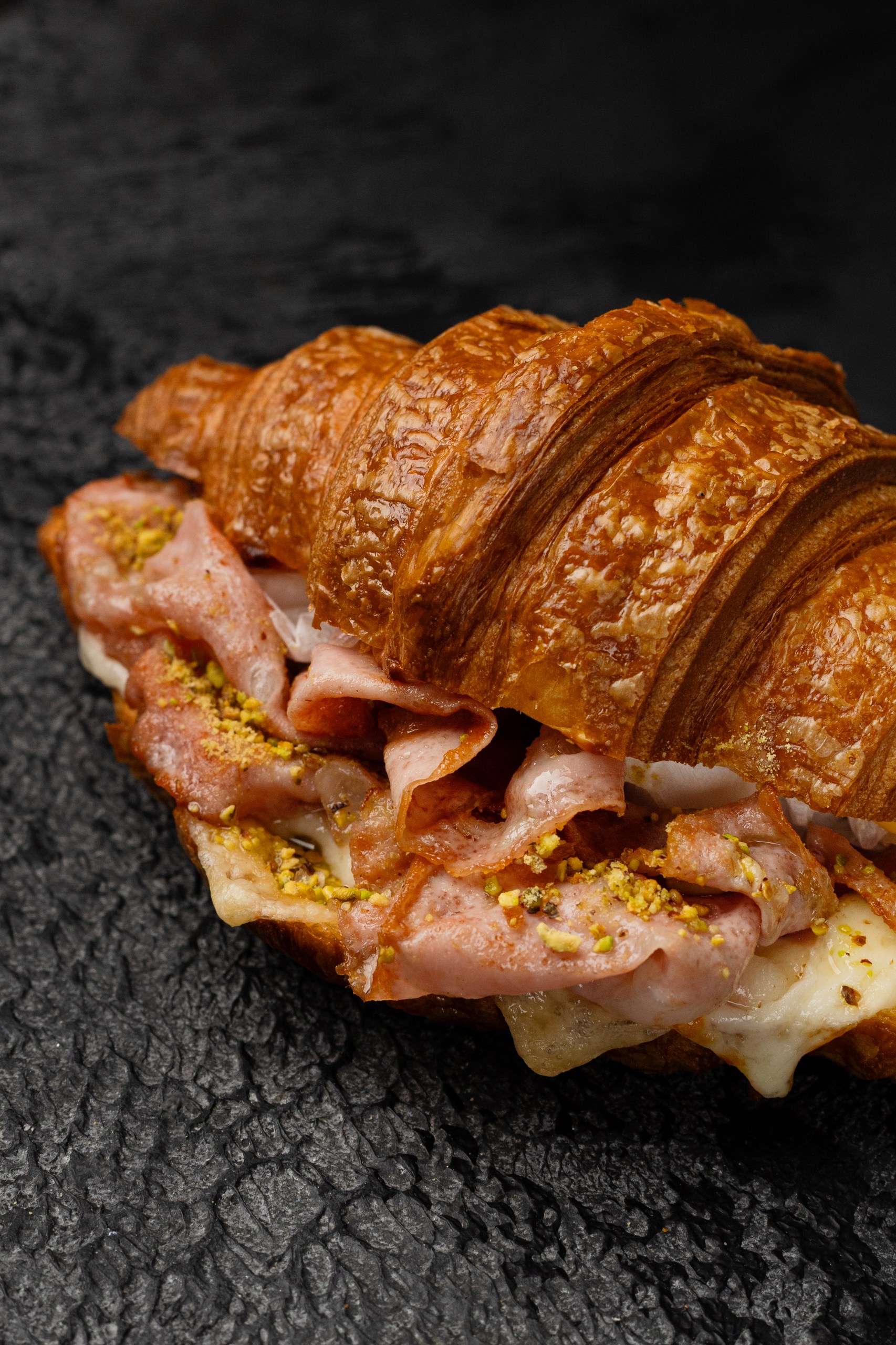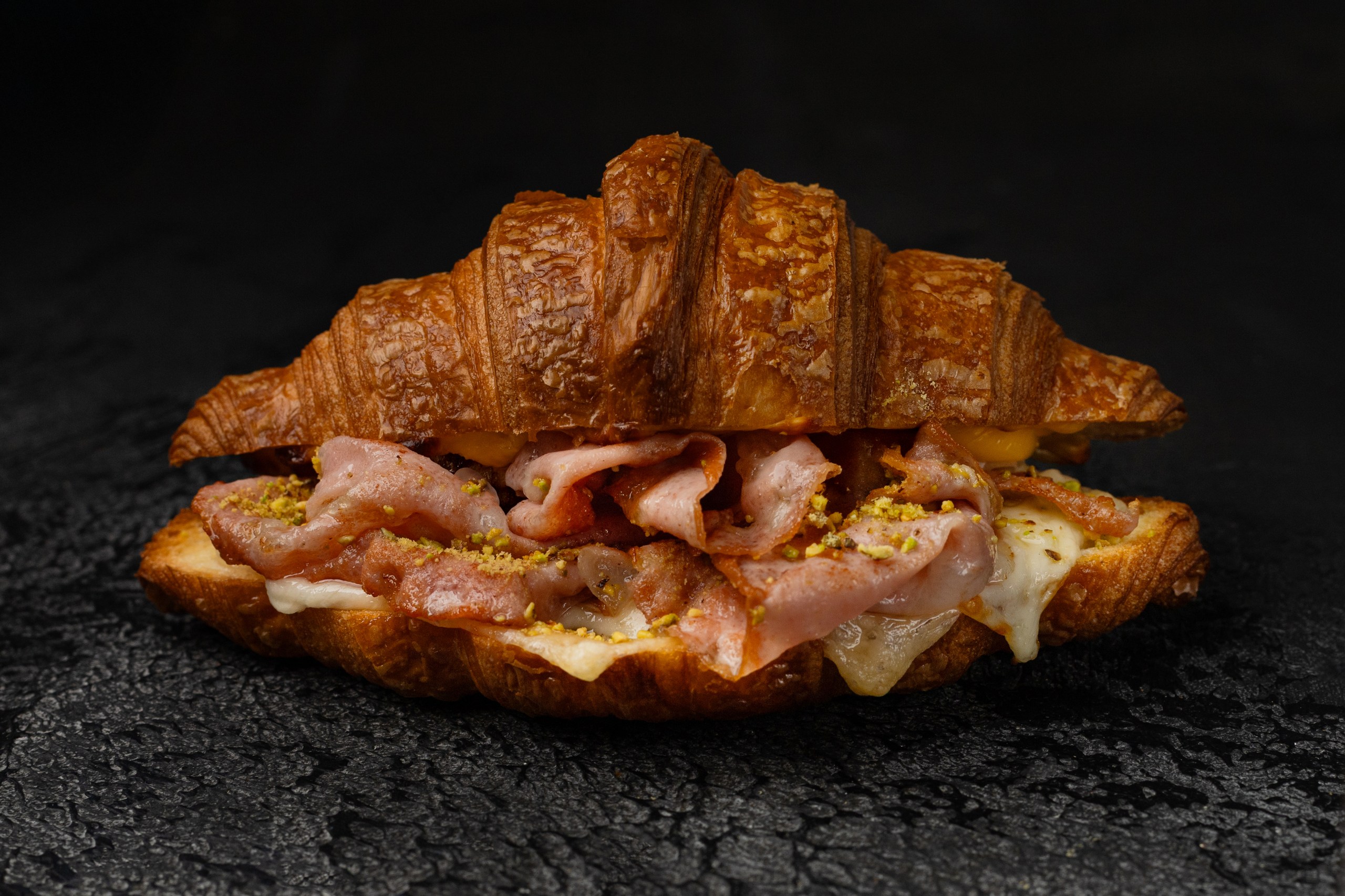 Круассан с итальянской ветчиной, сыром гауда, сулугуни. чеддер