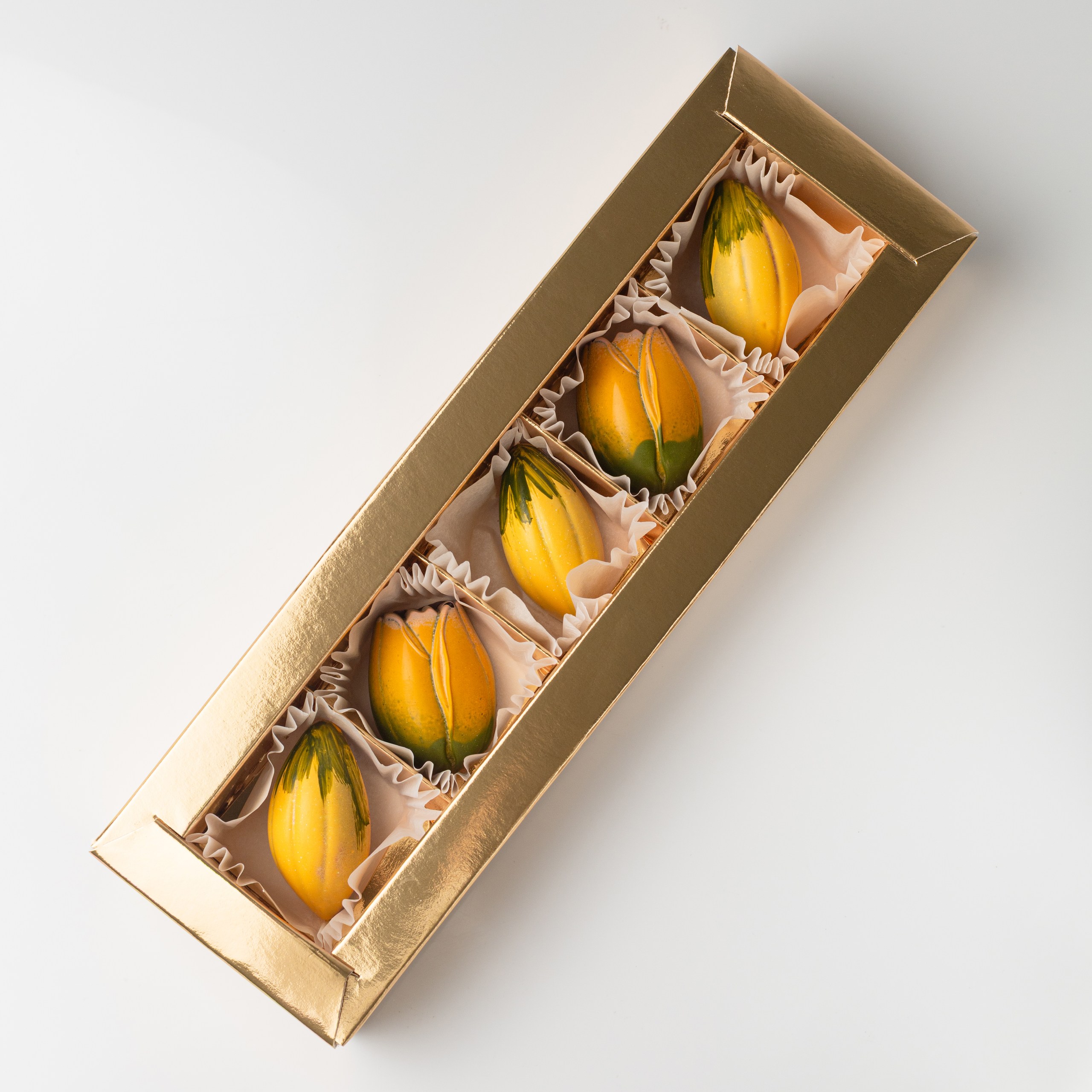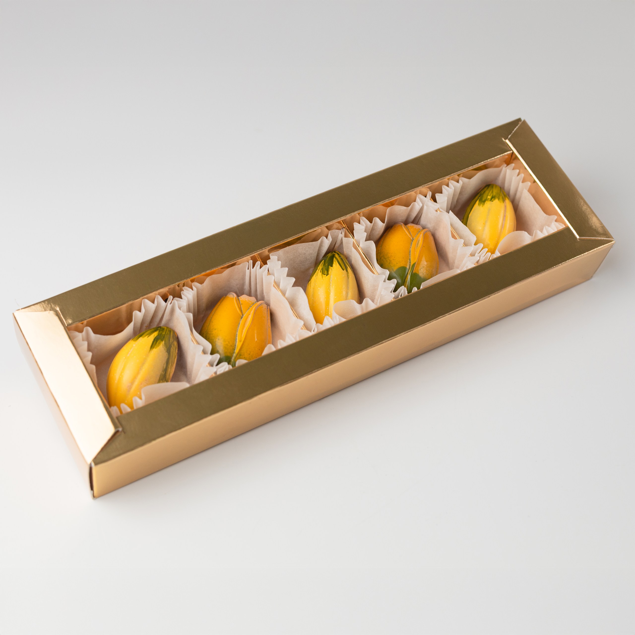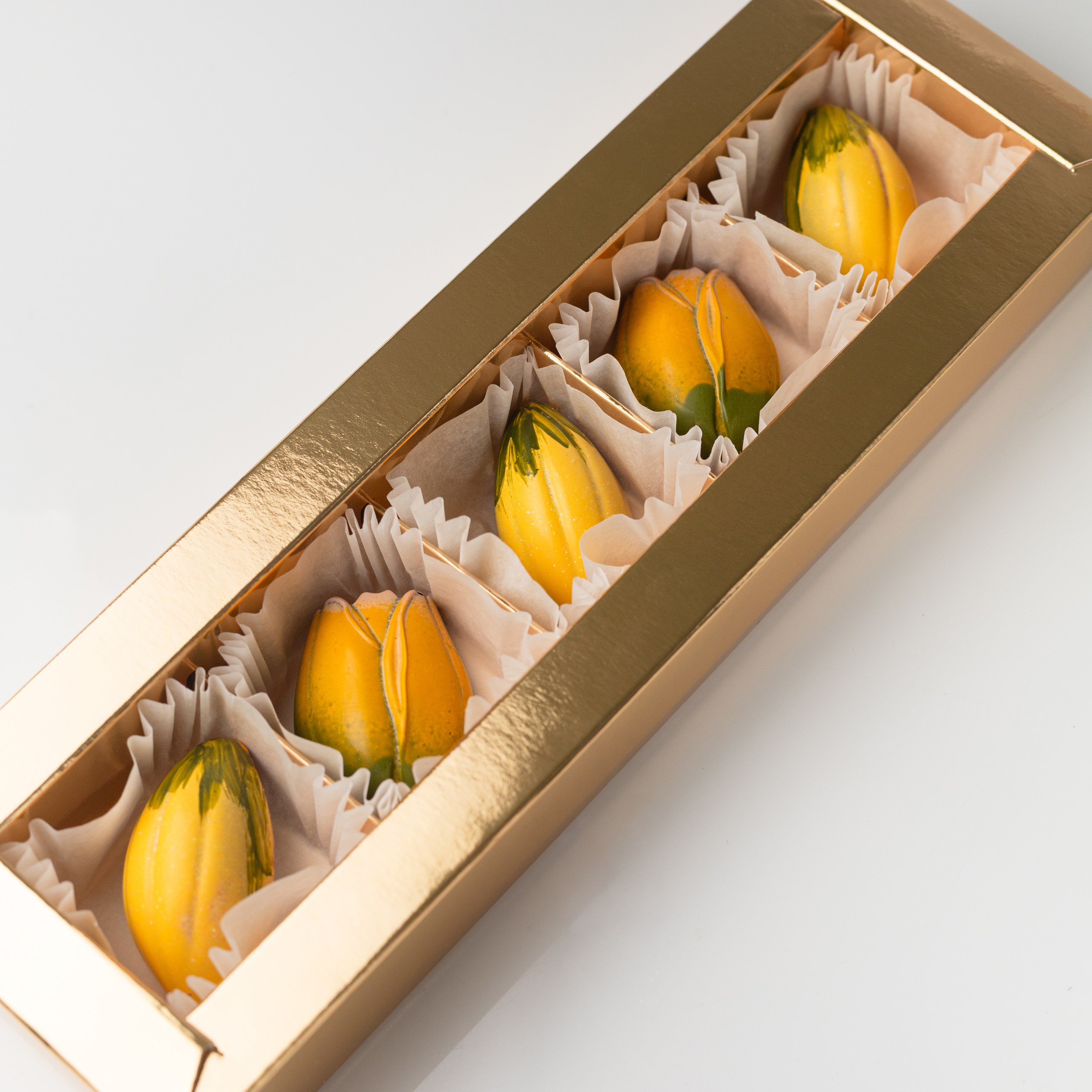 Конфета "Маракуйя" - Корпус из темного шоколада. Начинка: ганаш на белом шоколаде с добавлением пюре маракуйя 5 шт