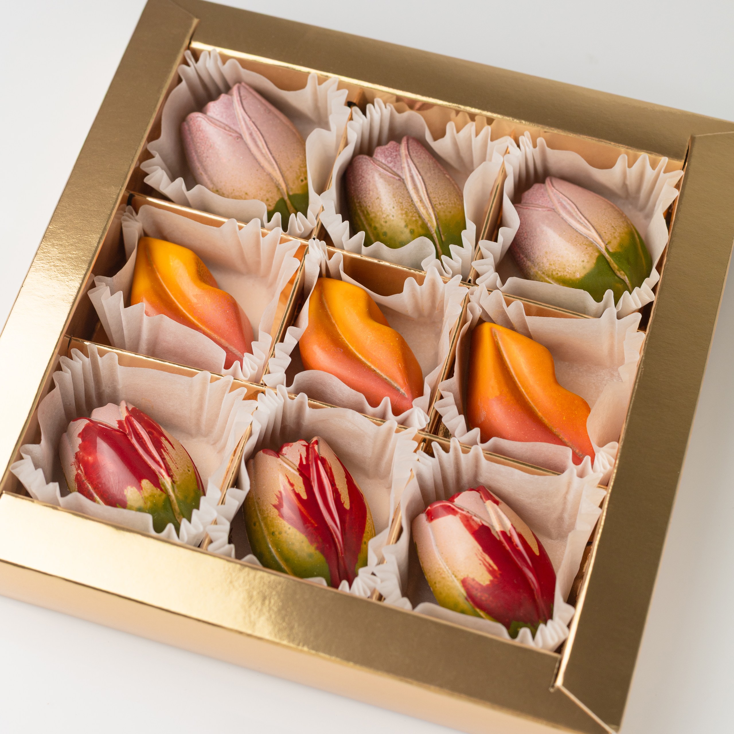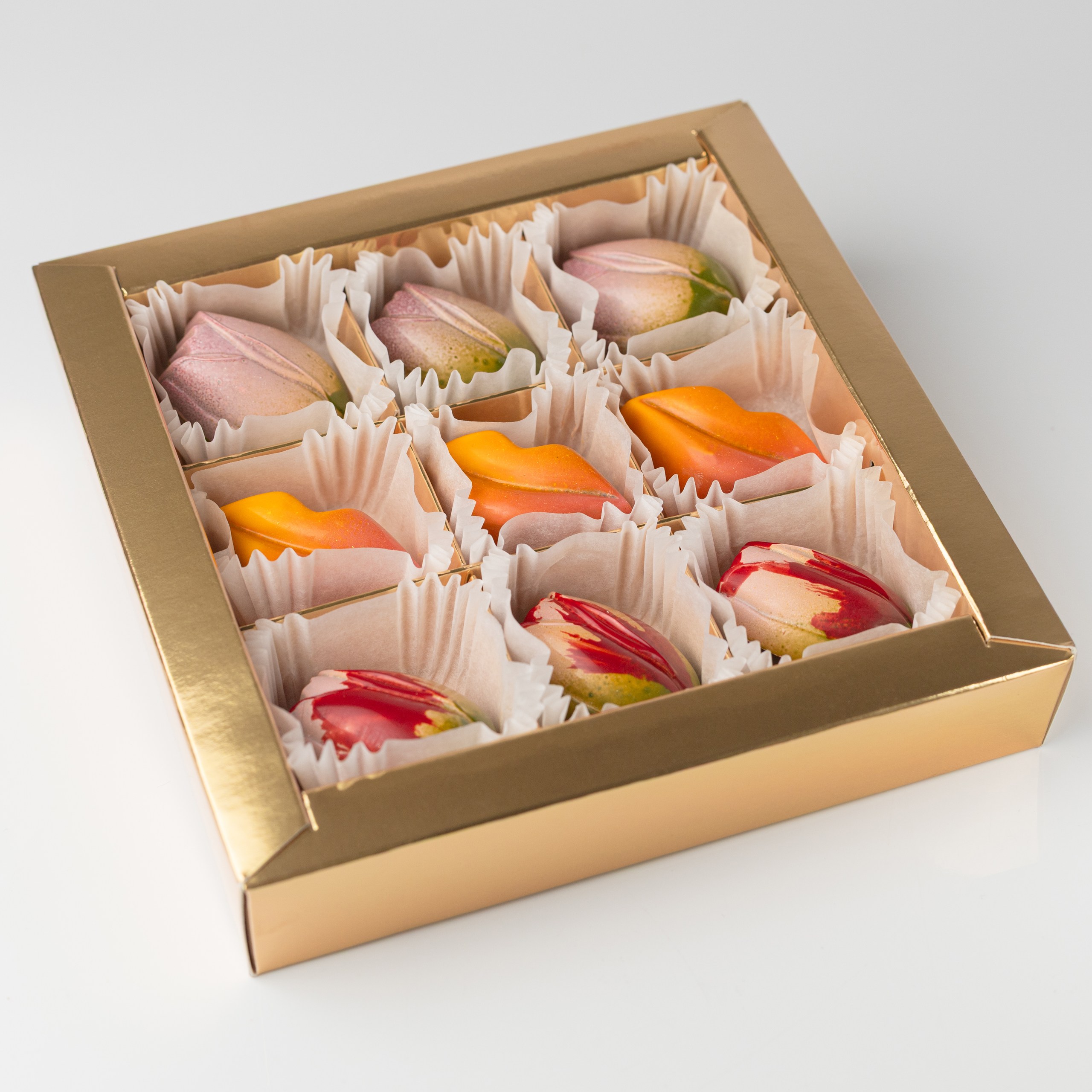 Конфета "Маракуйя" - Корпус из темного шоколада. Начинка: ганаш на белом шоколаде с добавлением пюре маракуйя 9 шт