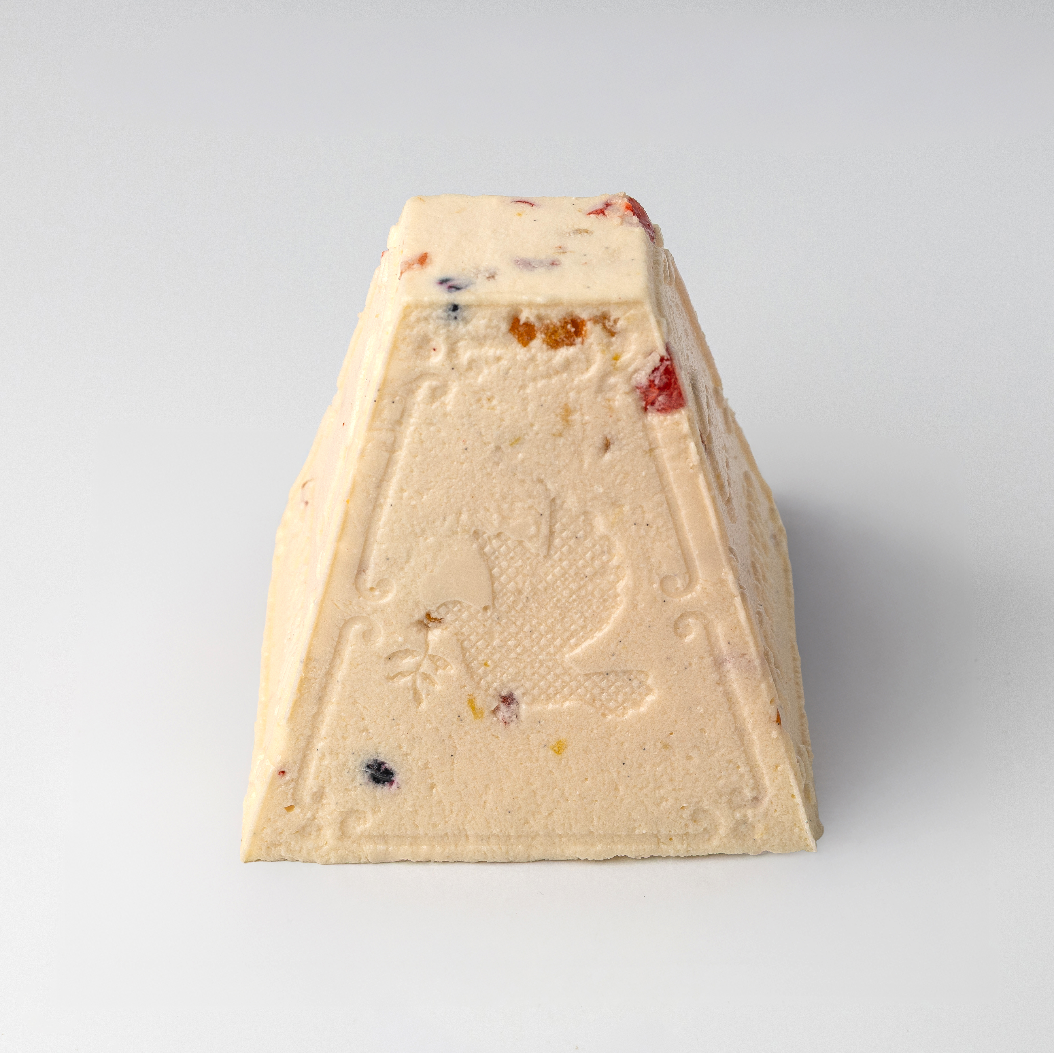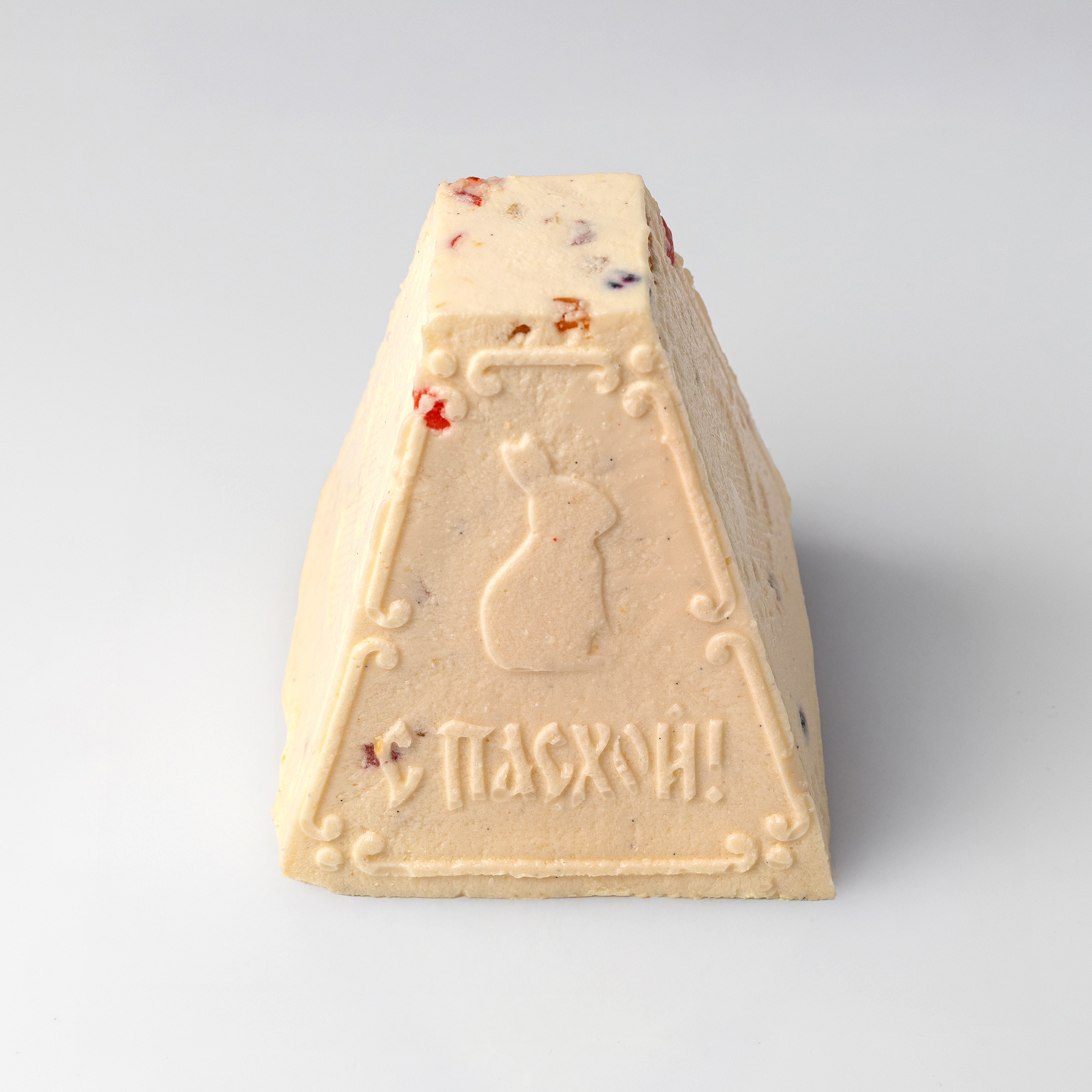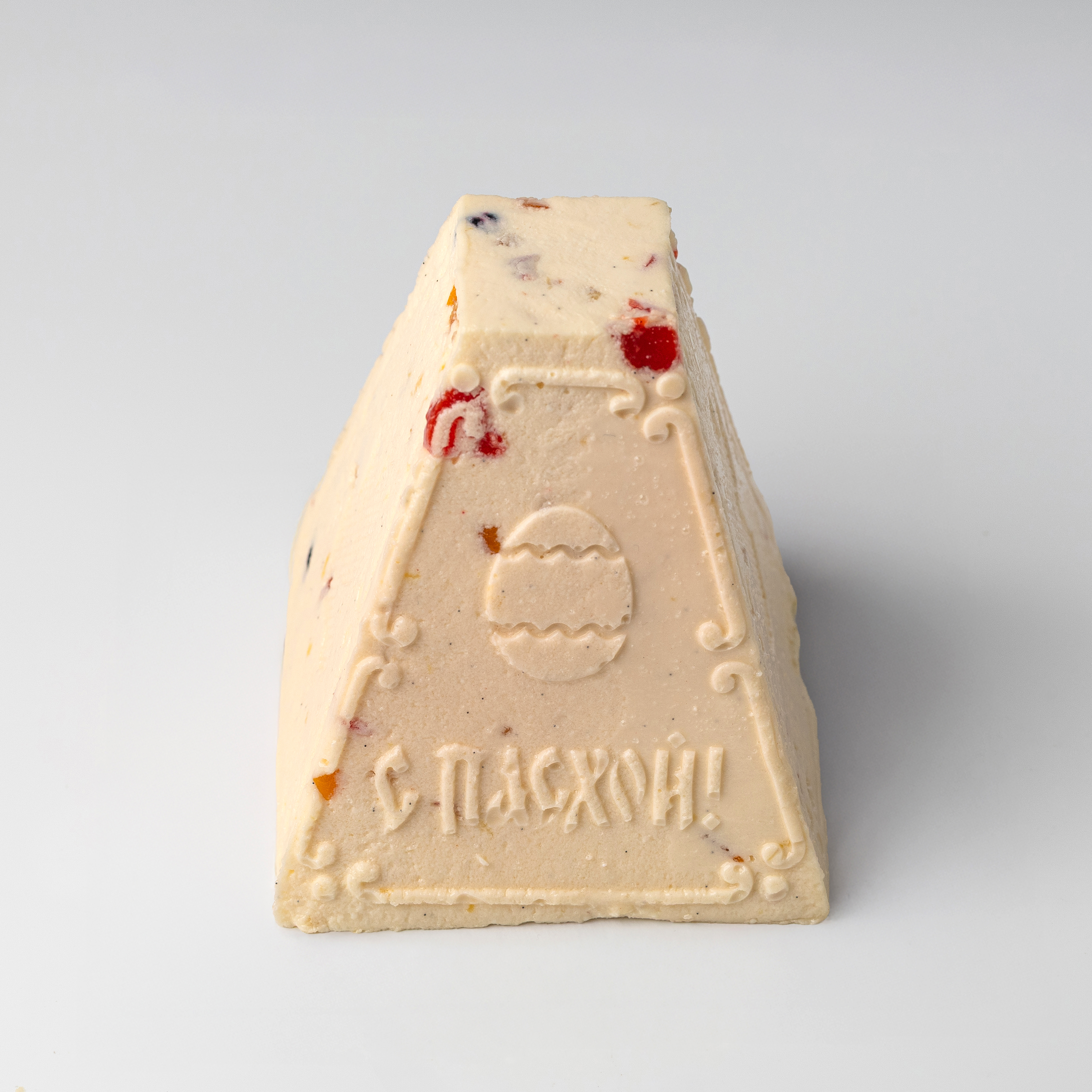 Состав: творог, сливки, сахар, сироп глюкозы, масло сливочное, цукаты вяленой вишни, черной смородины, карамелизированный апельсин, яйцо, желатин, ваниль