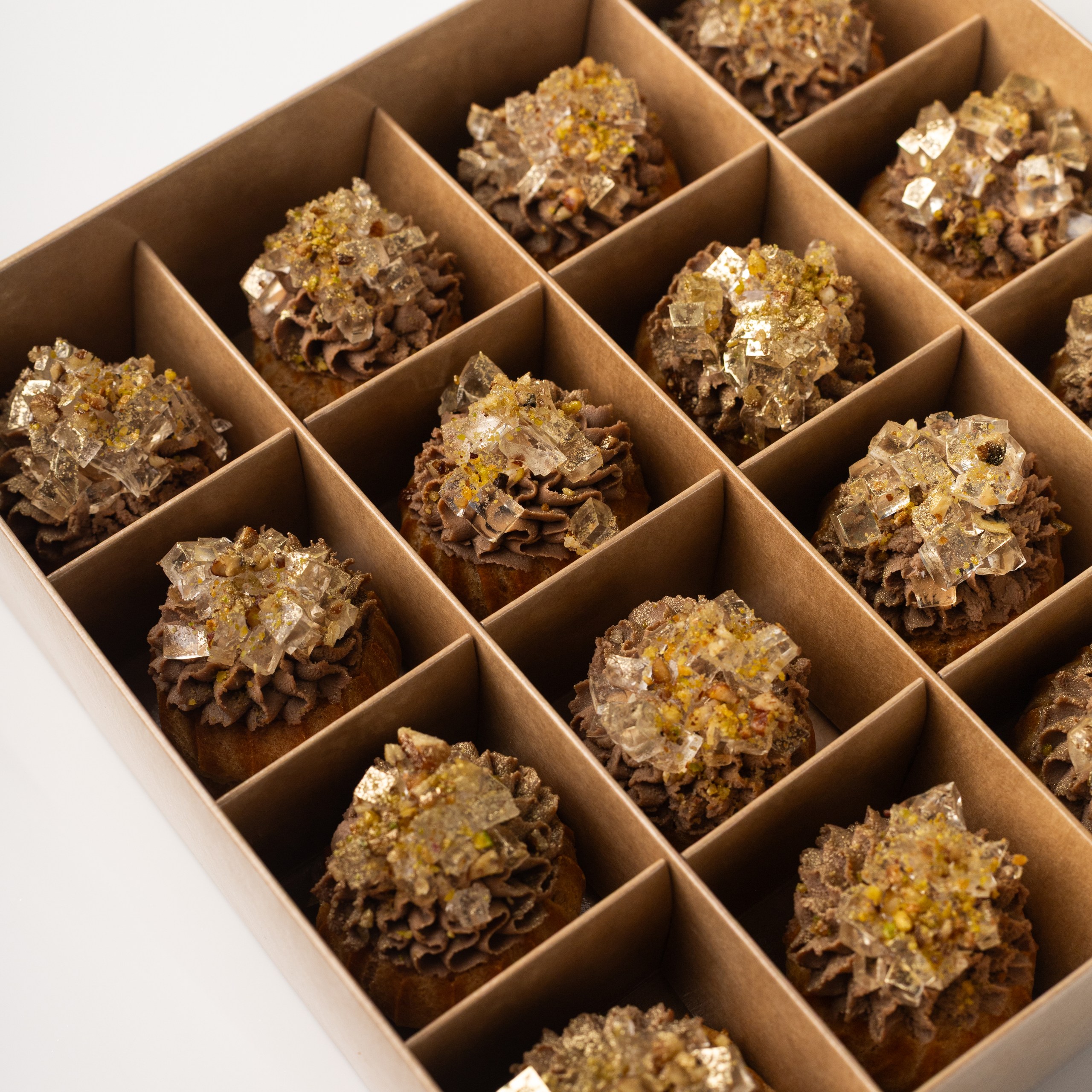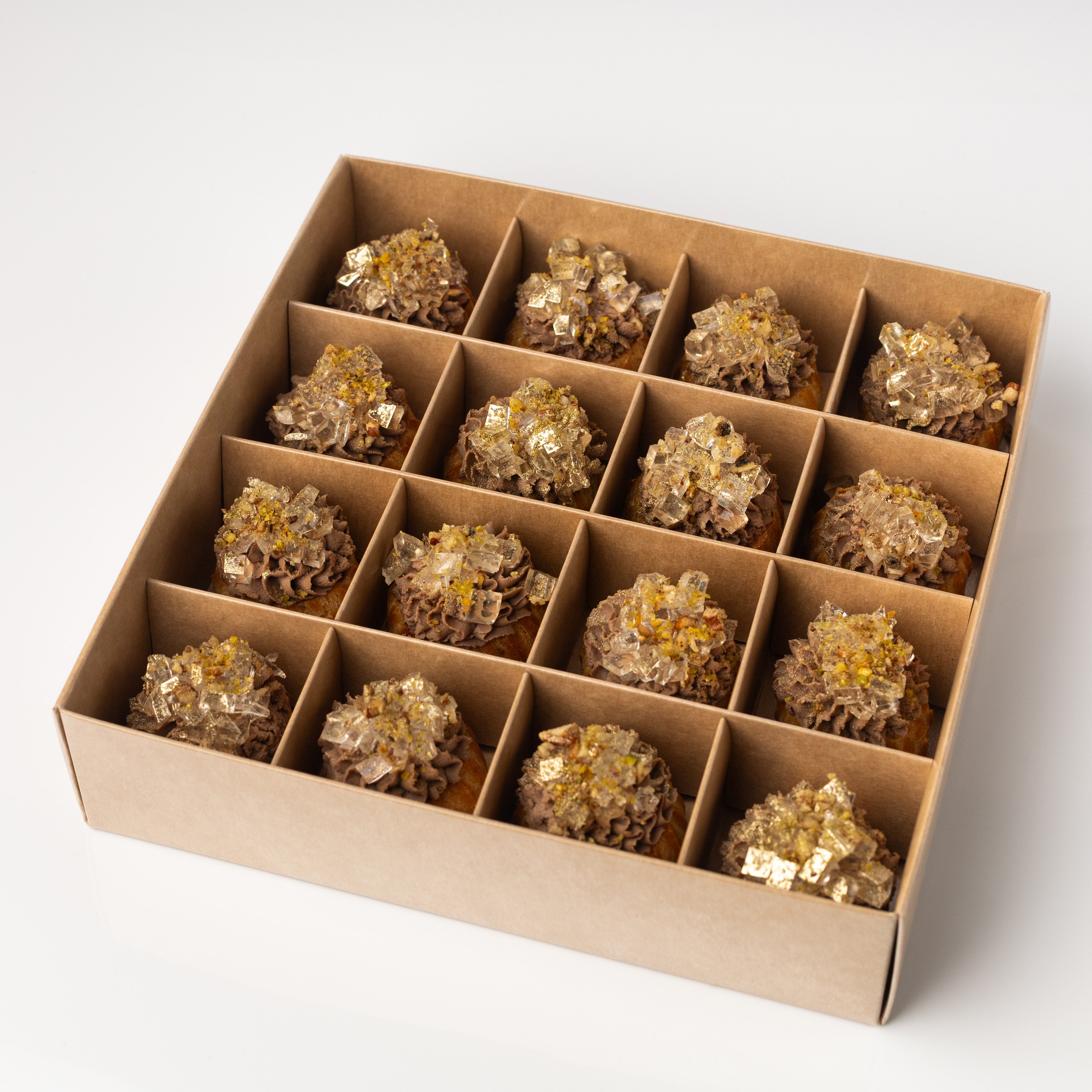 Бокс профитролей с паштетом из печени цыпленка и желе из Просеко
