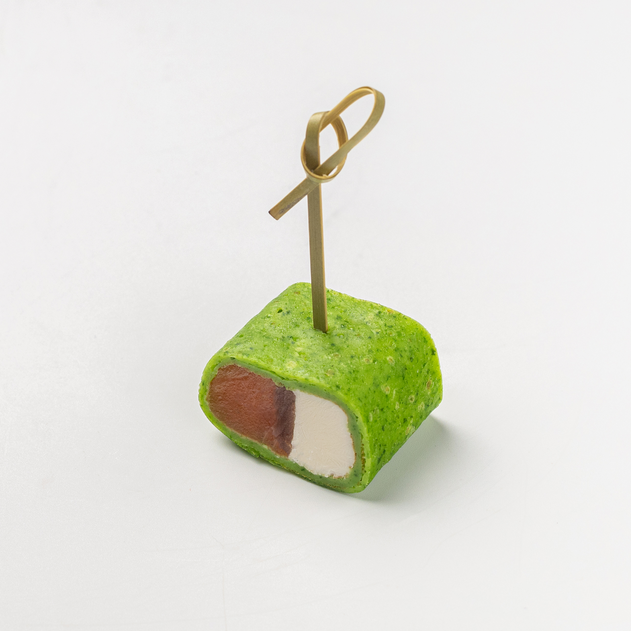 Рулетик из шпинатного блинчика со сливочном сыром и семгой 16 шт