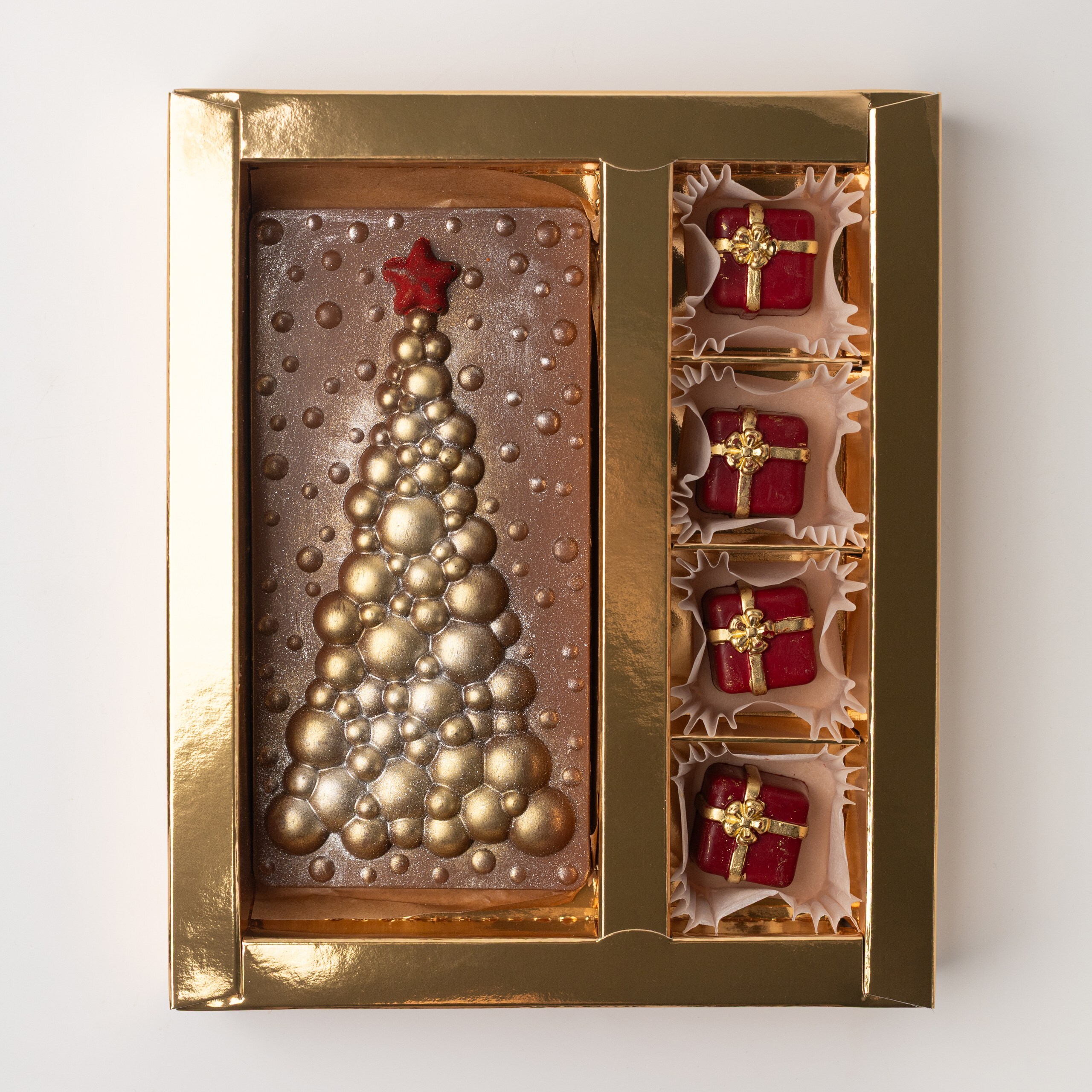 Конфета "Подарок" - Корпус из темного шоколада. Начинка: ганаш на темном и молочном шоколаде с добавлением карамели и ликера Бейлиз.